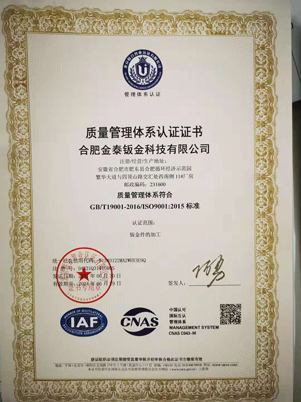 合肥金泰鈑金科技有限公司,專業(yè)從事精密鈑金件加工的新技術(shù)股份制企業(yè),主要承接各類鈑金加工、激光切割、沖壓件、機箱機柜、設(shè)備外殼、不銹鋼產(chǎn)品的精密鈑金加工制作。